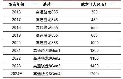 2016年高通推出的驍龍835處理器,成本不過300元。最新推出的驍龍8Gen4處理器,成本已經(jīng)漲到了1700元。