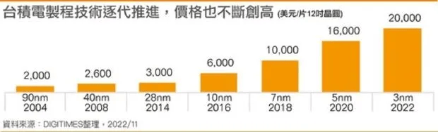 據(jù)臺灣電子時報(bào)報(bào)道,臺積電2025年代工報(bào)價(jià)中,5nm、4nm、3nm制程的代工報(bào)價(jià)最高漲10%,2nm的代工報(bào)價(jià)更是飆上3萬美元。