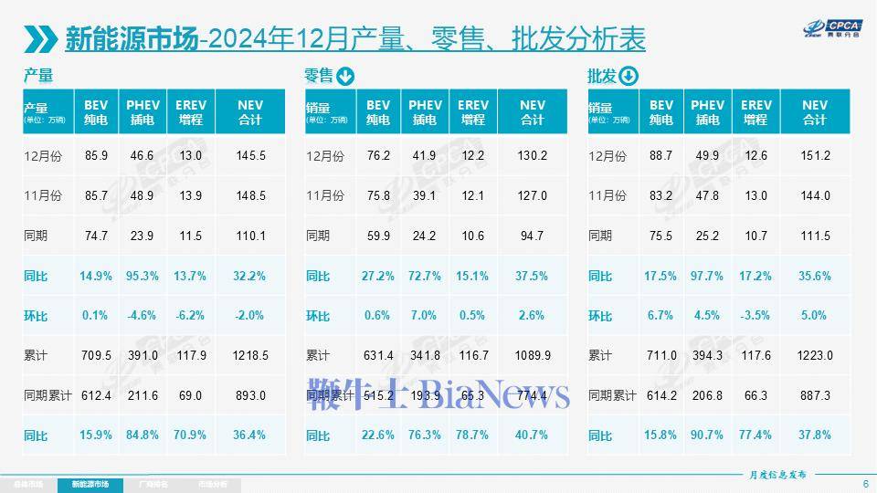 2024年新能源車市場火爆,12月零售量突破130萬輛!