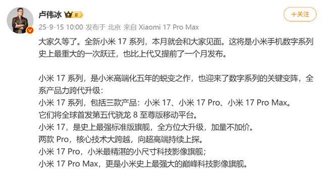小米集團(tuán)創(chuàng)始人雷軍通過社交媒體平臺(tái)公開表態(tài),對(duì)第五代驍龍8至尊版的性能表現(xiàn)給予高度評(píng)價(jià),并正式確認(rèn)小米17系列將成為全球首款搭載該平臺(tái)的智能手機(jī)。這一信息迅速引發(fā)科技圈熱議,消費(fèi)者對(duì)新機(jī)的技術(shù)規(guī)格充滿期待。