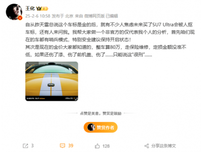 小米SU7 Ultra金車標(biāo)引擔(dān)憂,王化:摳標(biāo)?這行為“很刑”!